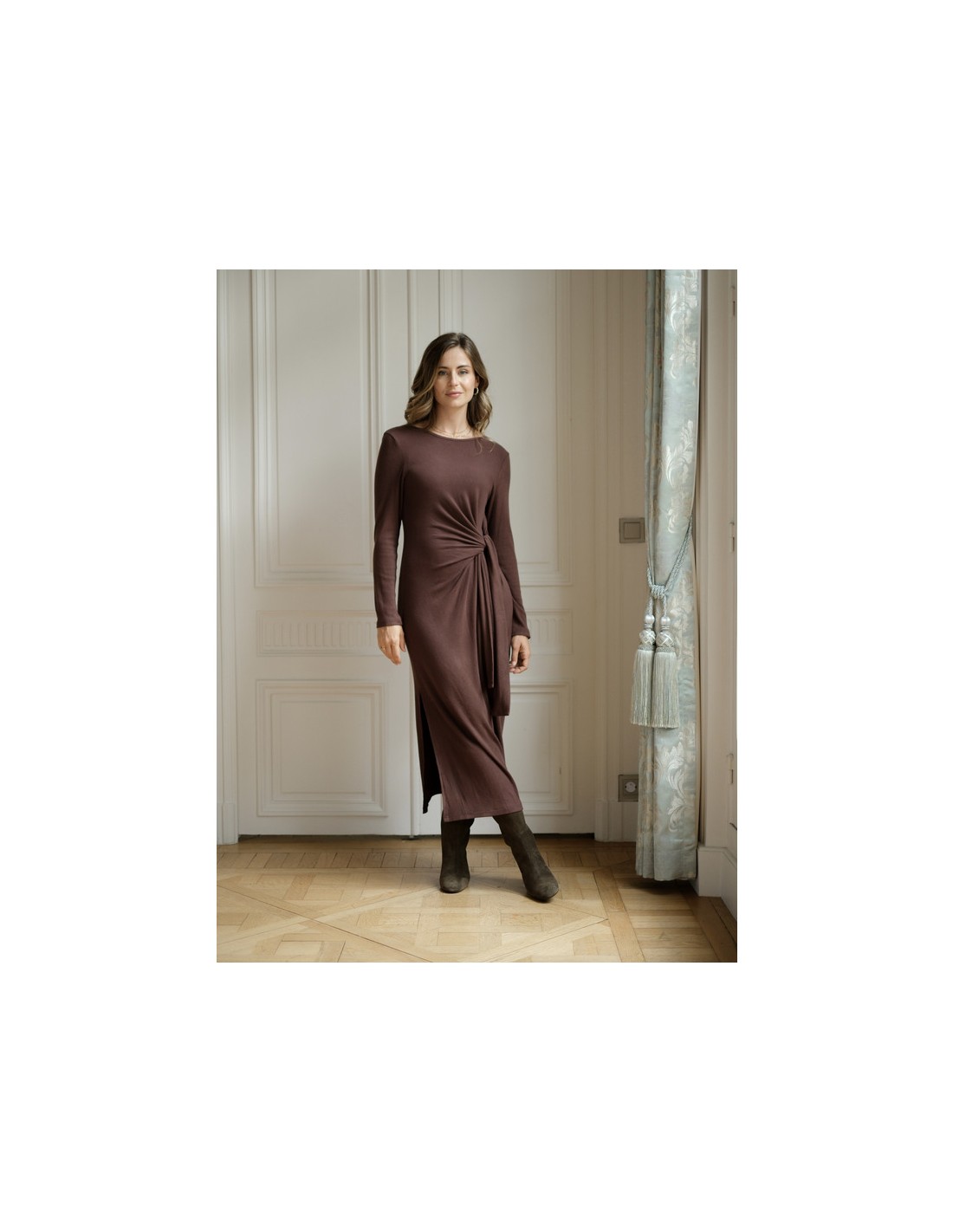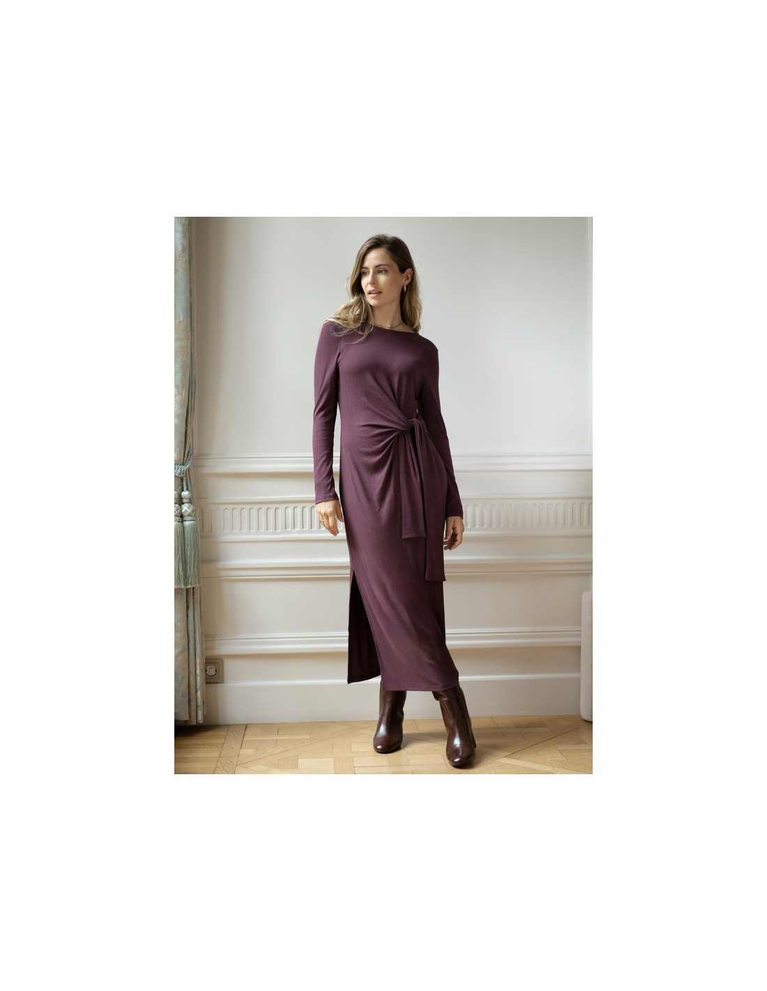 Mujer AMELIE AMOUR AM504408 VE (W) AMELIE AMOUR AM504408 Vestido acanalado, con lazo e la cadera para realzar la figura View